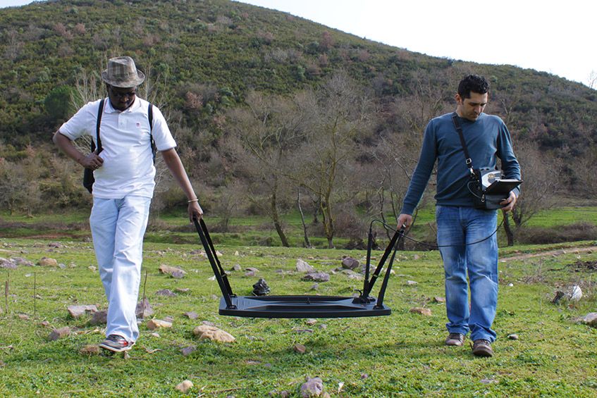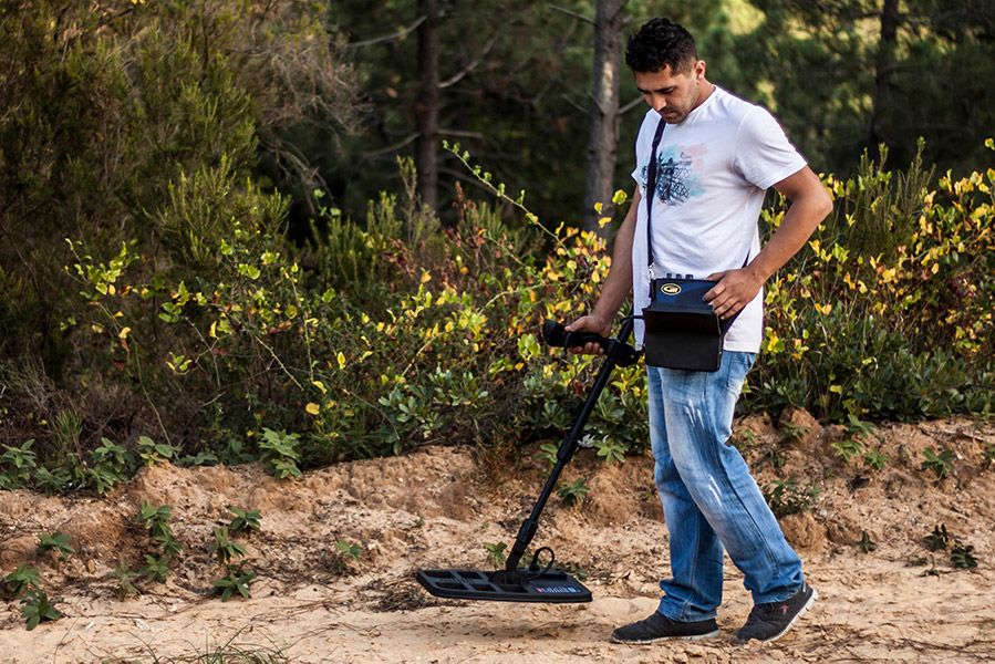 Mehrere Meter in Abhängigkeit der Spule, des Bodentyps und der Objektgröße |